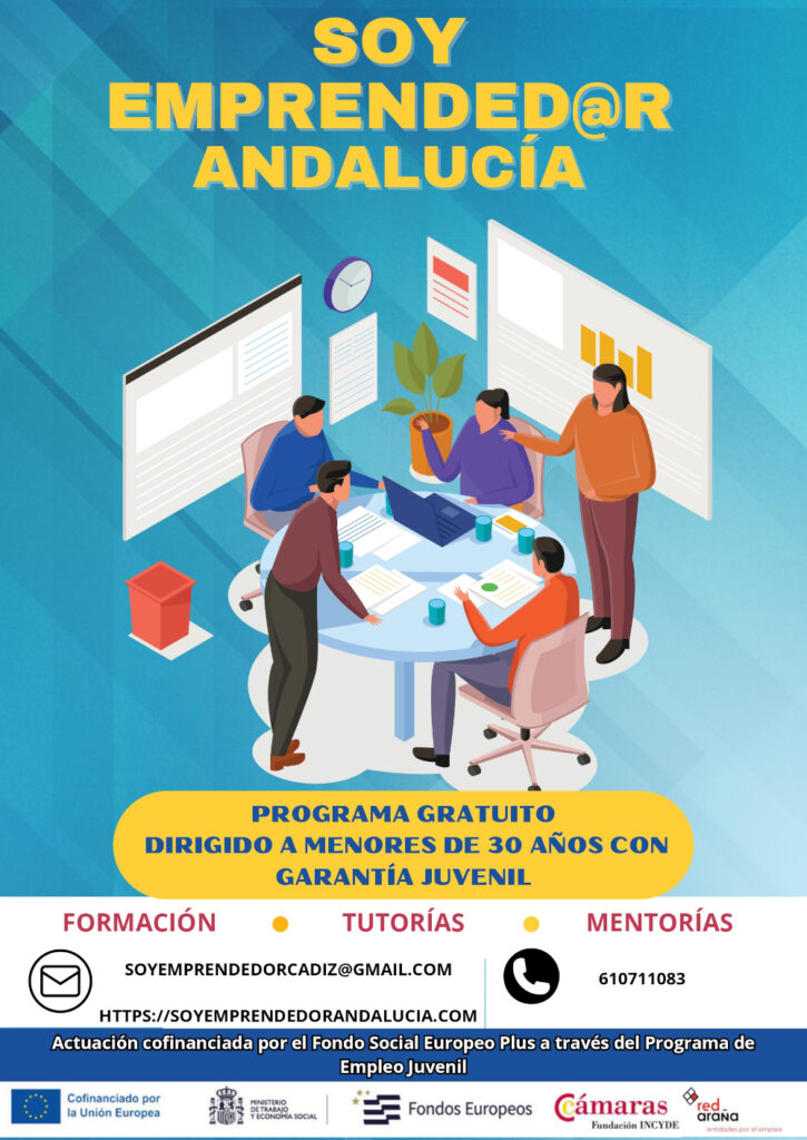 Soy Emprended@r Andalucía es un programa destinado a jóvenes menores de 30 años no ocupados y no integrados en los sistemas de formación o educación. El objetivo general de este programa es mejorar la empleabilidad y la ocupabilidad de los jóvenes mediante el fomento de la iniciativa empresarial y el autoempleo. En este programa trabajamos además de la sensibilización hacia el emprendimiento, el desarrollo de las competencias emprendedoras que ayuden a la inserción laboral de las personas participantes.